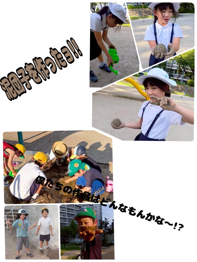 最近は「砂遊び」がブームのようで、ジョウロに水を入れ小さいシャベルや熊手で砂を掘ったりかき集めたりして、山や池を作ったり泥団子作りを行なったりしています。