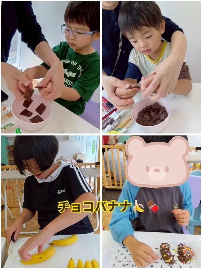 みんなで作ったチョコバナナはおやつの時間にペロリと完食していました!🥰