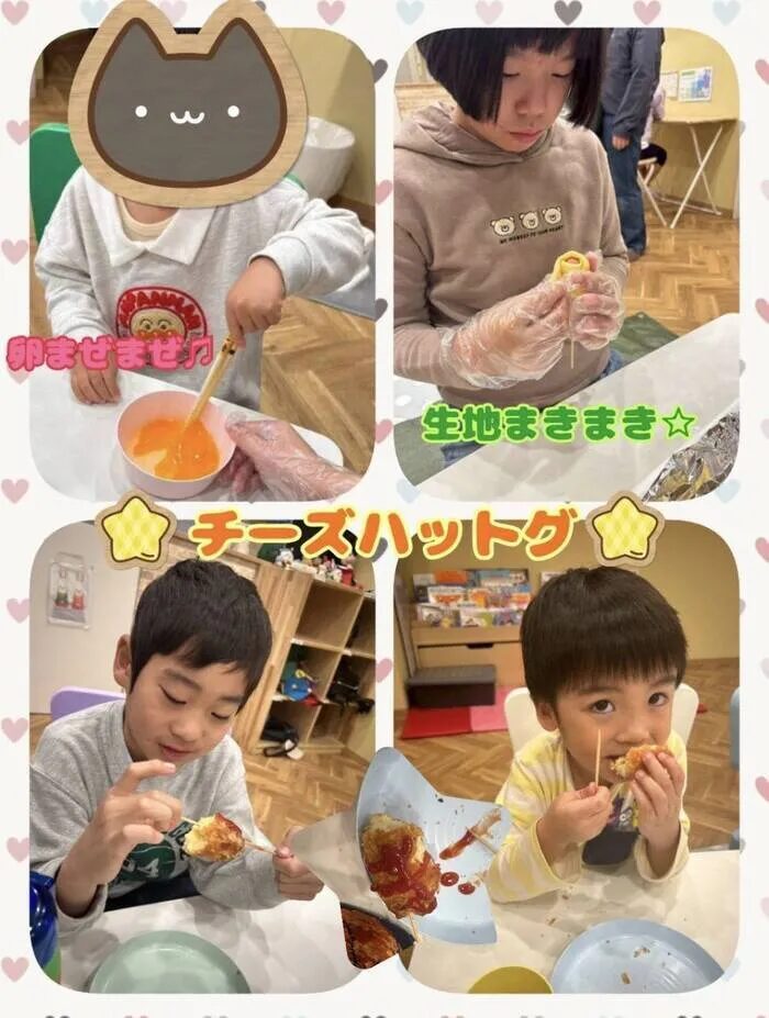 お友だちと協力をして二人体制で生地をこねてくれていましたよ🌸