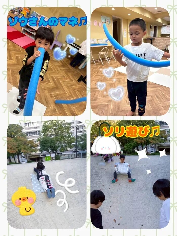 ゾウさんの真似をして遊んでいるお子さまもいました🐘