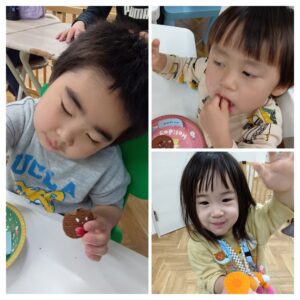 クッキーにトナカイのお顔をチョコペンでかきかき🍫