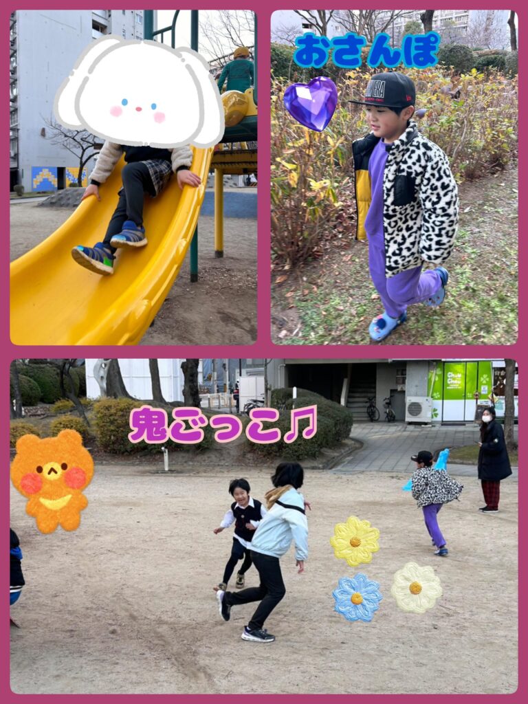 お外で鬼ごっこや、すべり台、お散歩をして遊びました🌸