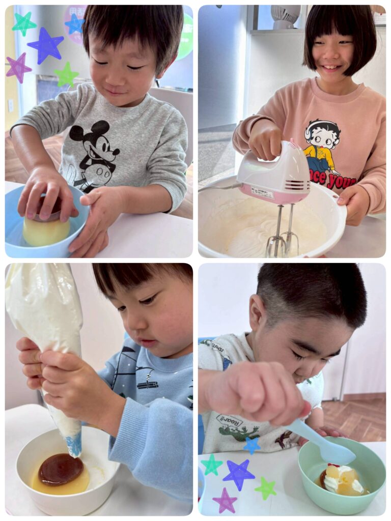 泡立て器で生クリームをぐるぐる混ぜてくれたお子様たち😊