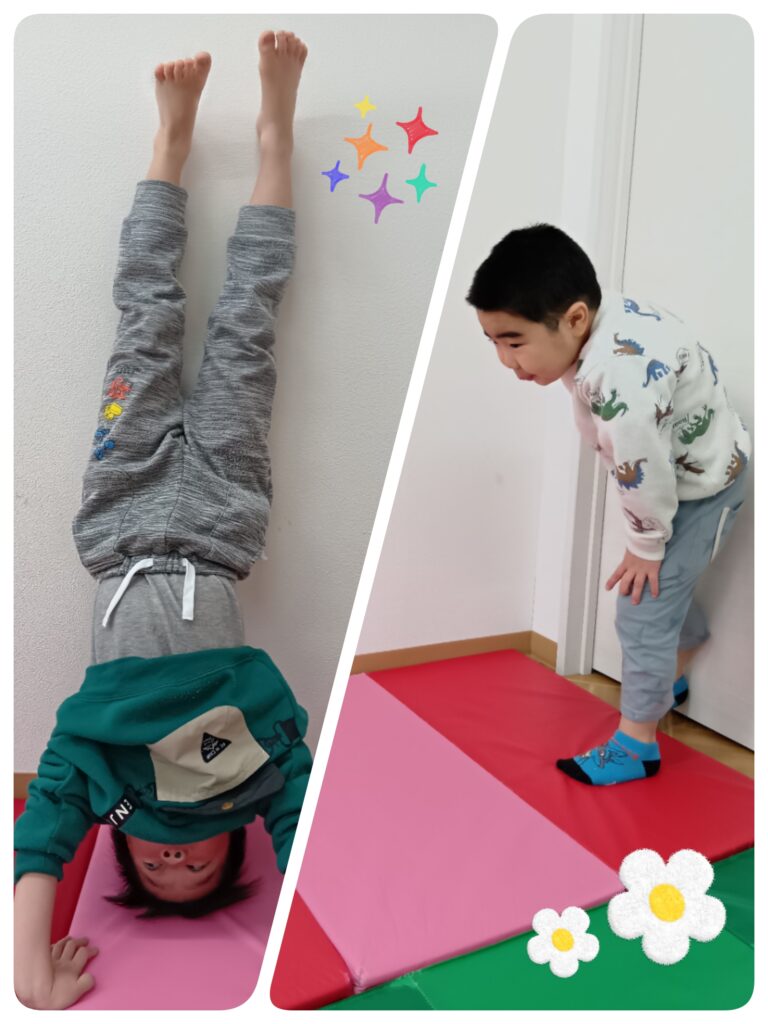 この日も、壁倒立が出来ると「先生!!!みてみて!」と教えてくれるお子さまたち😊