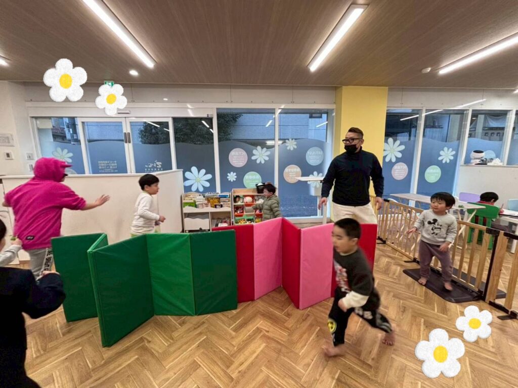 「はしらない」「しずかに」をルールで決めて鬼ごっこを楽しむお子様たち🌷