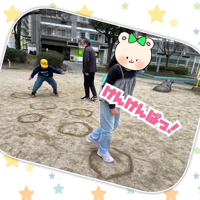 この日は地面に丸を書いて、けんけんぱっ!をして遊びました✨