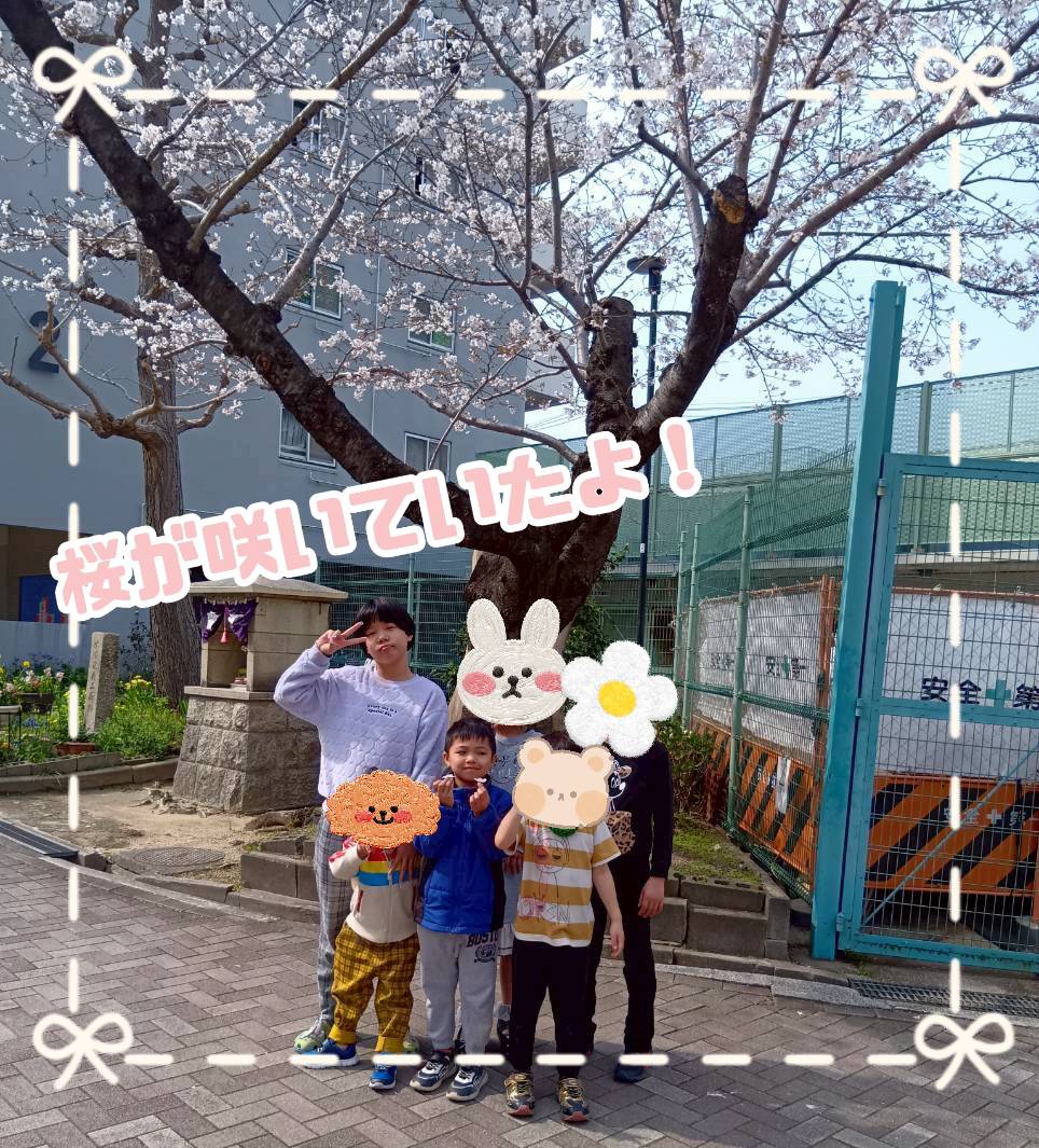 そこで、満開に近い桜の木が一本あったので、外で遊んでいたお友だちを呼んで、せっかくなので、卒園(業)したお友だちをまん中に、写真をパチリ!と撮りました。