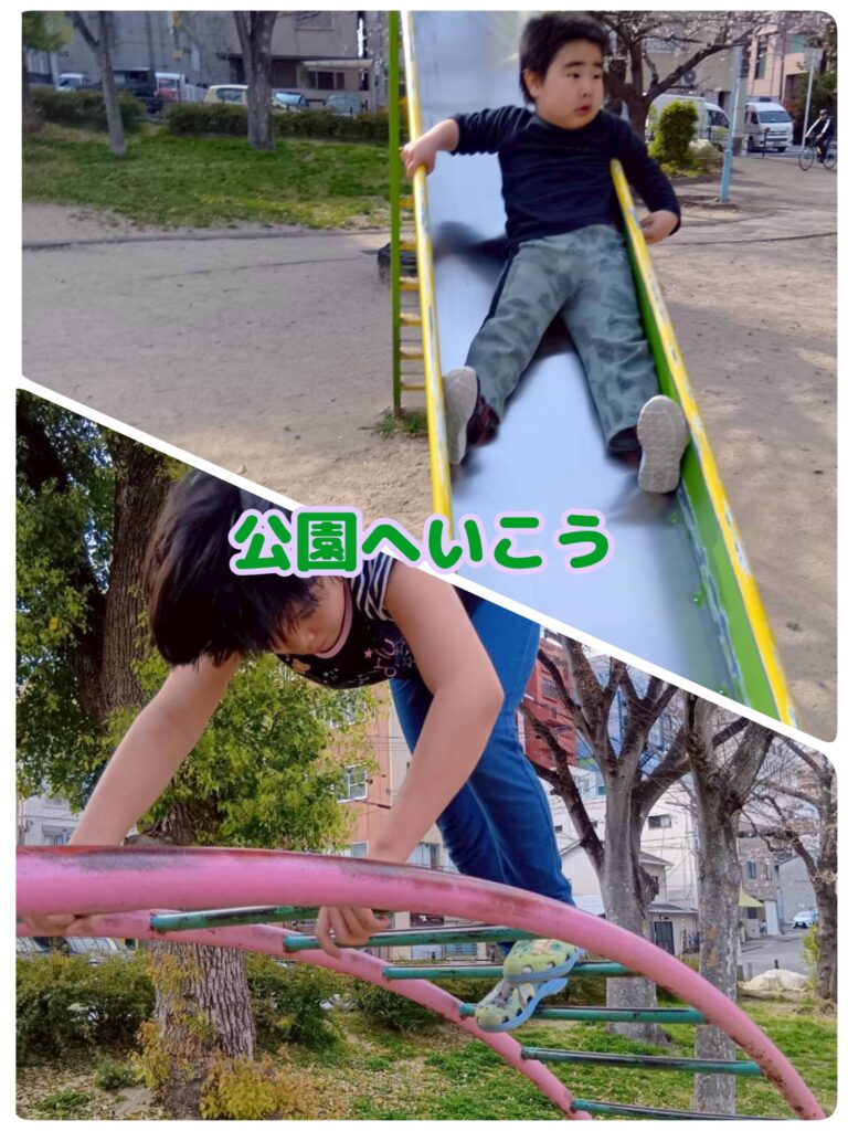 公園では、滑り台や鬼ごっこ、ブランコなど様々な遊びを行います。
