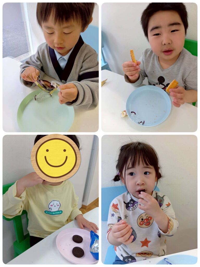 本日はでいじーでおやつを食べているお子さまたちの様子をご紹介します🍪