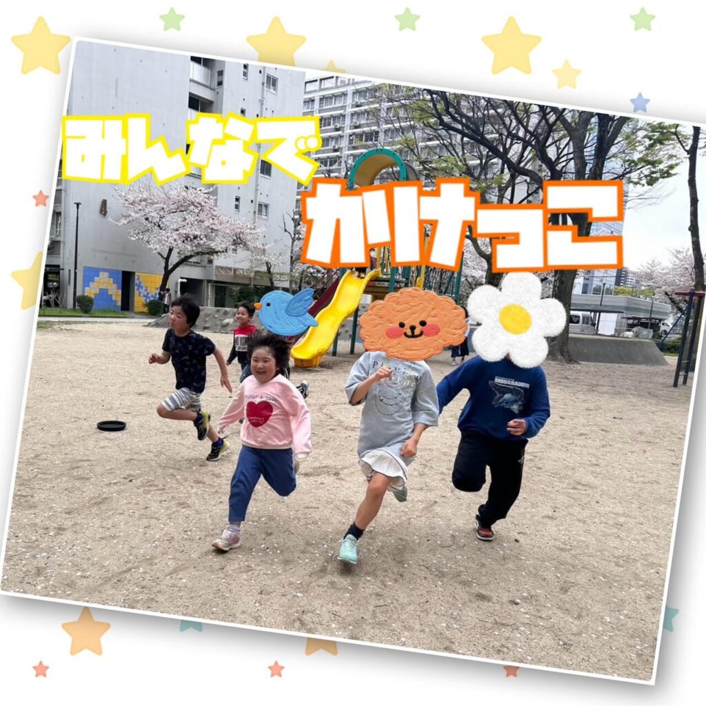 スタートラインやゴールの場所をお子さまや職員と話し合って決め、タイムを測って本格的なルールで遊びました♫