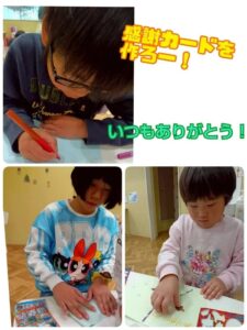 こんにちは!ChouChouの中川です😊 本日は勤労感謝の日にちなみ、感謝を込めてカードを作りました🌸 色画用紙、シール、色鉛筆、ペンなどを使って自由に表現しました💕 恥ずかしそうにしながらもしっかりとメッセージを書いて […]